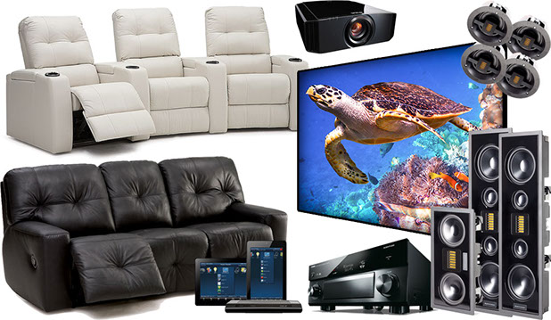 Home theater packages offer you the complete luxury home theater setup. Each installation package includes a projector, screen, receiver, surround sound system, universal remote control, and all necessary cables and wires.