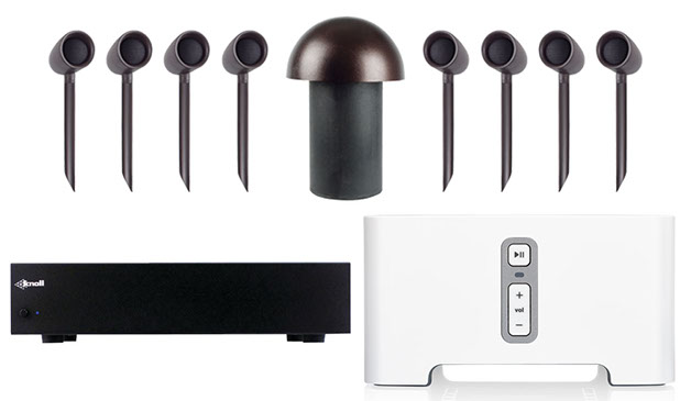 The SONARRAY SR1 System consists of 8 satellite speakers and 1 inground single stereo subwoofer. The SR1 is a beautiful and simple way to bring high quality, evenly distributed audio to your outdoor space.
