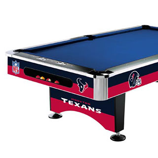 Show your team spirit with one of our customizable 8 ft. licensed sports team pool tables. Choose from over 30 different NFL OR MLB team colors. You can even opt to add the team logo in the center of the table. The cloth is 100% polyester, which is easy to clean, durable, and stain-resistant. The polyester fabric also features an ant-friction coating to create consistent English and reduce ball marks.